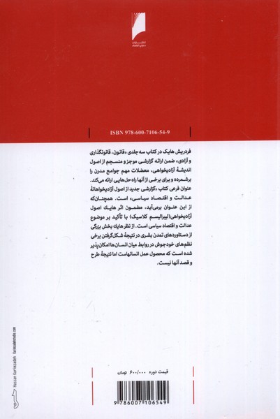 فردریش ها یک در کتاب سه جلدی ، قانون، قانونگذاری و آزادی ضمن ارائه گزارشی موجز و منسجم از اصول اندیشه آزادیخواهی معضلات مهم جوامع مدرن را برشمرده و برای برخی از آنها راه حلهایی ارائه میکند. عنوان فرعی کتاب گزارشی جدید از اصول آزادیخواهانه عدالت و اقتصاد سیاسی است. همچنان که از این عنوان بر می آید مضمون اثر هایک اصول آزادیخواهی لیبرالیسم کلاسیک با تأکید بر موضوع عدالت و اقتصاد سیاسی است. از نظر هایک بخش بزرگی از دستاوردهای تمدن بشری در نتیجه شکل گرفتن برخی نظم های خودجوش در روابط میان انسانها امکان پذیر شده است که محصول عمل انسانهاست اما نتیجه طرحو قصد آنها نیست.