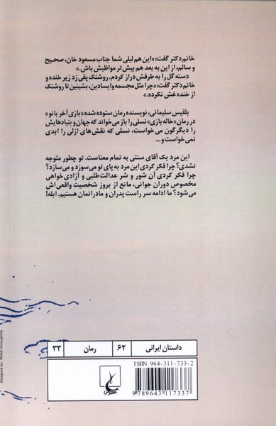 «خاله بازی» داستان یک مرد و سه زن است. زنها هر کدام به فراخوان موقعیت خود وارد زندگی این مرد میشوند و نقشی را بازی میکنند که برای آنها مقدر شده است. یکی میآید تا بمیرد، یکی میآید تا بماند، یکی میآید تا نپذیرد. آن که نمیپذیرد به کاستیهای طبیعی خود گردن میگذارد اما سعی میکند رویاروی کاستیهای اجتماعی بایستد و در نقشی که همگان برایش در نظر گرفتهاند بازی نمیکند. او در پی یافتن و ساختن یک هویت یگانه برای خود است: خانم دکتر گفت: «این هم لیلی شما جناب مسعود خان، صحیح و سالم، از این به بعد بیشتر مواظبش باش.» دسته گل را به طرفش دراز کردم. روشنک پقی زد زیر خنده و خانم دکتر گفت: «چرا مثل مجسمه وایستادین، بشینین تا روشنک از خنده غش نکرده.» بلقیس سلیمانی، نویسنده رمان ستوده شده «بازی آخر بانو» در رمان «خاله بازی» نسلی را باز میخواند که جهان و بنیادهایش را دیگرگون میخواست، نسلی که نقشهای ازلی را ابدی نمیخواست و ... این مرد یک آقای سنتی به تمام معناست. تو چطور متوجه نشدی؟ چرا فکر کردی این مرد به پای تو میسوزد و میسازد؟ چرا فکر کردی آن شور و شر عدالت طلبی و آزادیخواهی مخصوص دوران جوانی، مانع از بروز شخصیت واقعیاش میشود؟ ما ادامه سر راست پدران و مادرانمان هستیم. ابله!